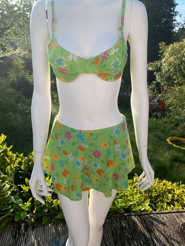 Bikini vert fleuries - bikini vert fleuries jupe culotte nickel (soutien taches)c est un 38 européen