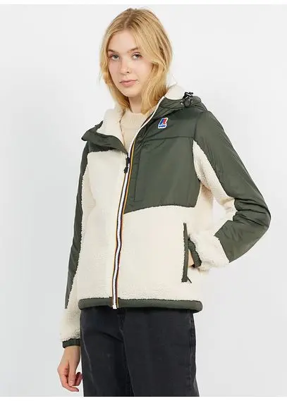 Blouson - capuche fourrée avec lien de serrage - col montant - fermeture zippée - trois poches avant - bi-matière ave...