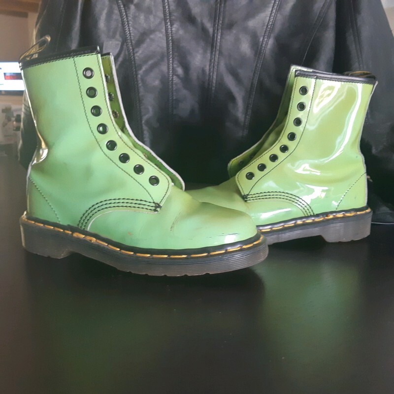 Dr Martens - Dr Martens vert clair, taille 35/36 en bon état, semelles intérieures et dessous des chaussures paraisse...