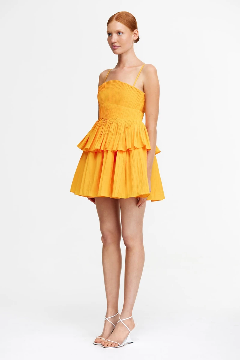 The Fairley Mini Dress in Marigold embraces volume and texture. Designed to be fitted through the bodice and relaxed ...