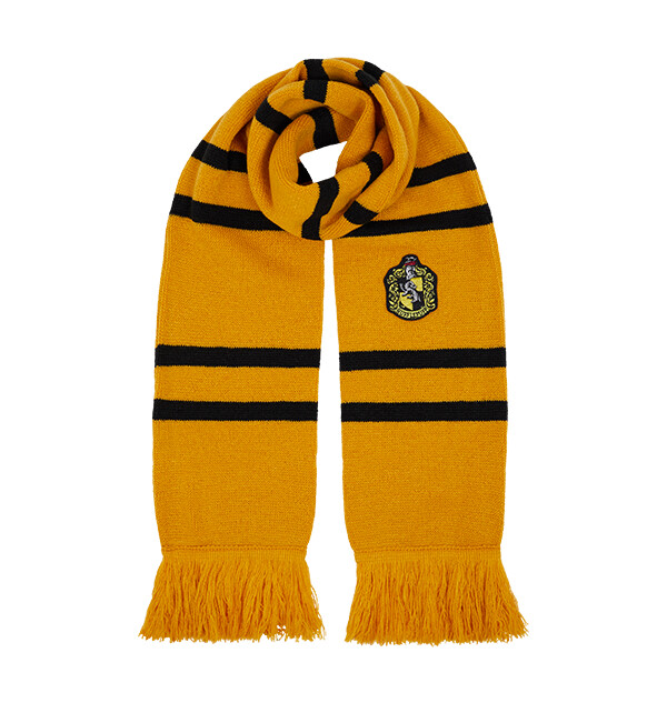 Keep warm and complete your Hufflepuff look with this unique knitted scarf. The scarf comes in mustard yellow and bla...