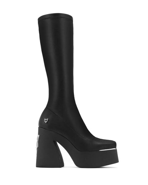Product Description Under the knee platform square toe boot, leg hugging upper featuring Naked Wolfe "wolfe head" pla...