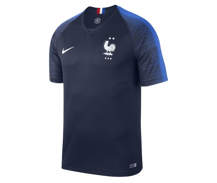 Maillot Nike France Domicile 2 étoiles 2018/19, coloris Bleu. Mouvements naturels. Confort maximisé. Tissu respirant.