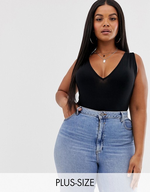 Top grande taille par PrettyLittleThing Potentiel panier : considérable Décolleté plongeant Modèle uni Coupe slip Cou...