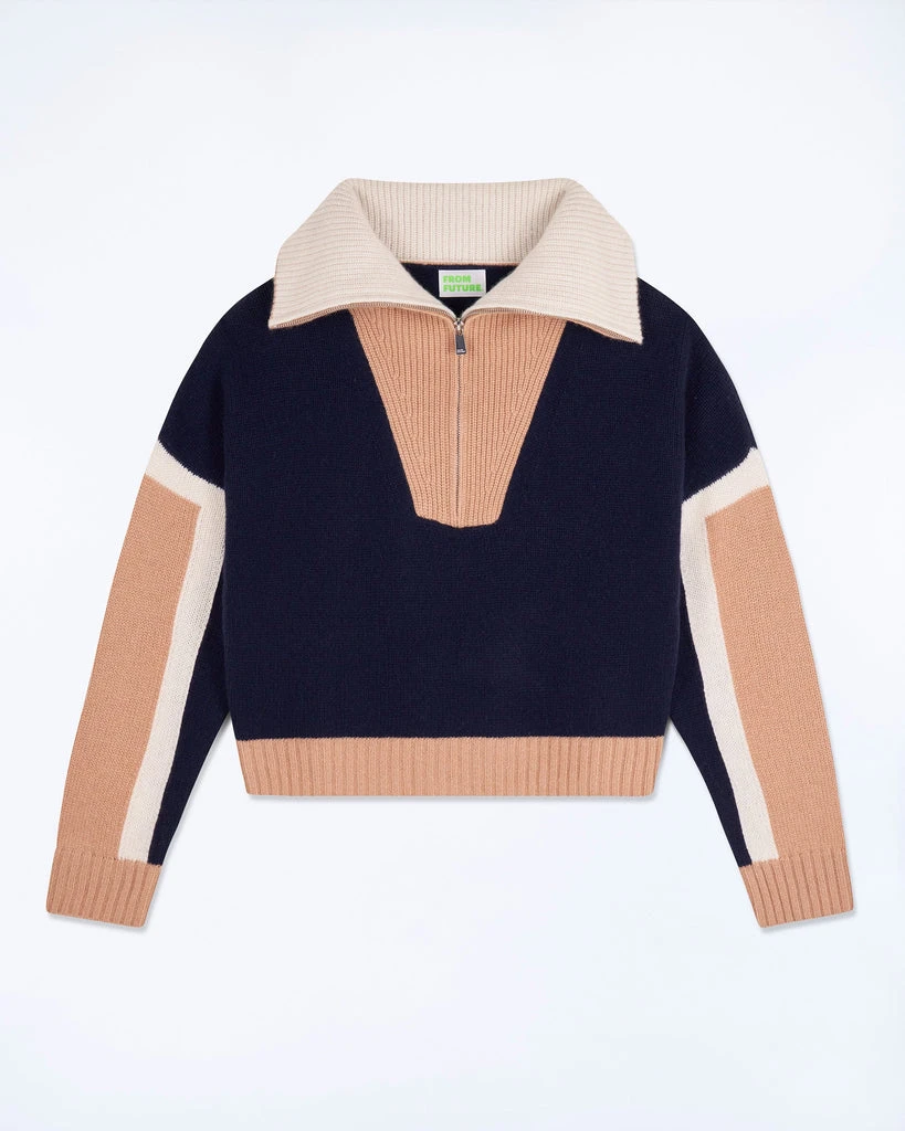 Coupe impeccable et lignes affirmées : ce pull tricolore se pare de bandes contrastées pour une allure élégante et st...