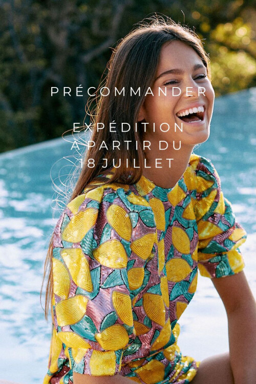 Robe à manches courtes tout en sequins. Cette robe est fabriquée en France dans notre atelier parisienCarla fait un t...