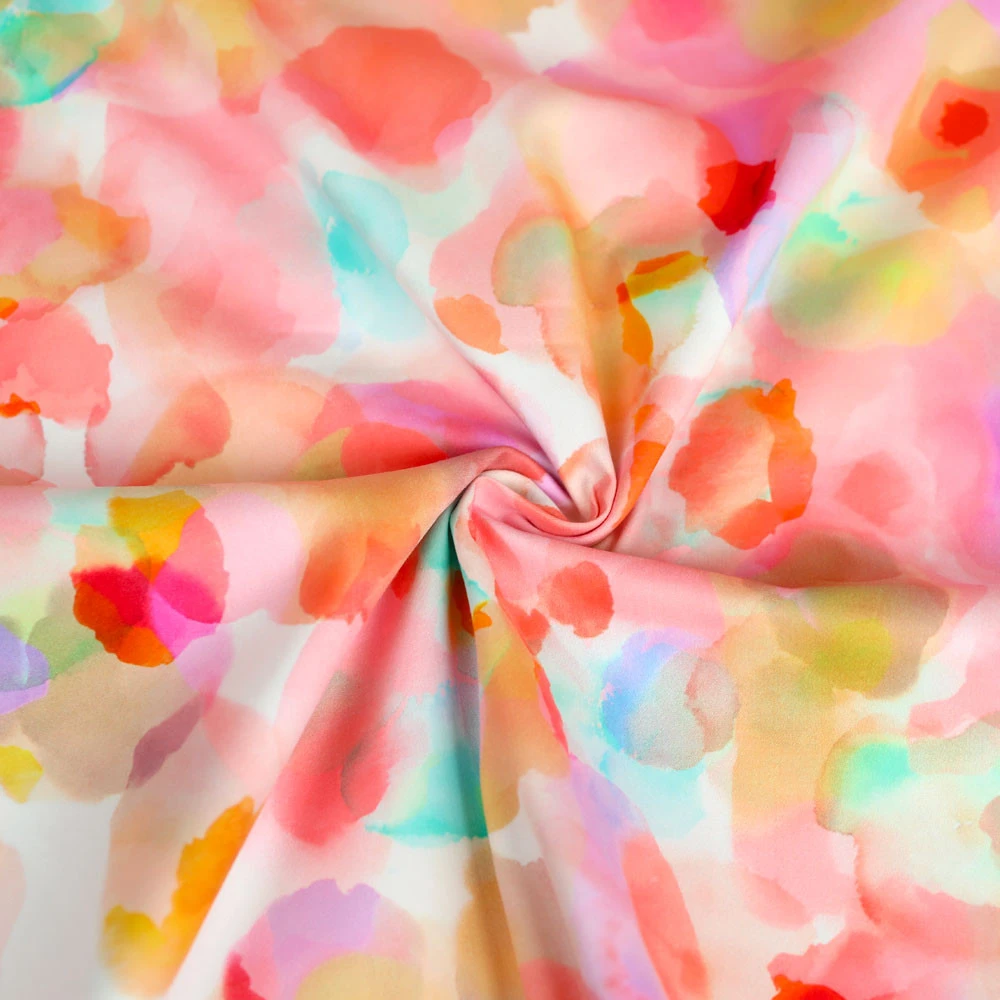 Tissu coton popeline stretch à motif bloom multicolore | Pour couture d'habits de poids moyen