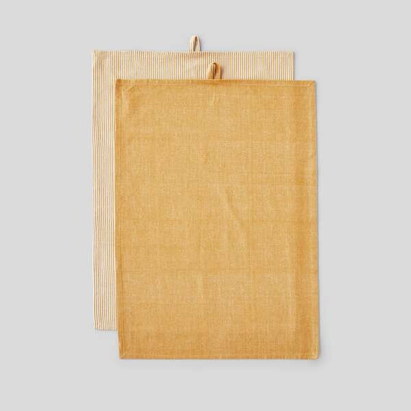Lot de 2 torchons - Motif : un métis et un tissé teint rayé - Dimensions : 50 x 70 cm - Matière : coton bio - Numéro ...