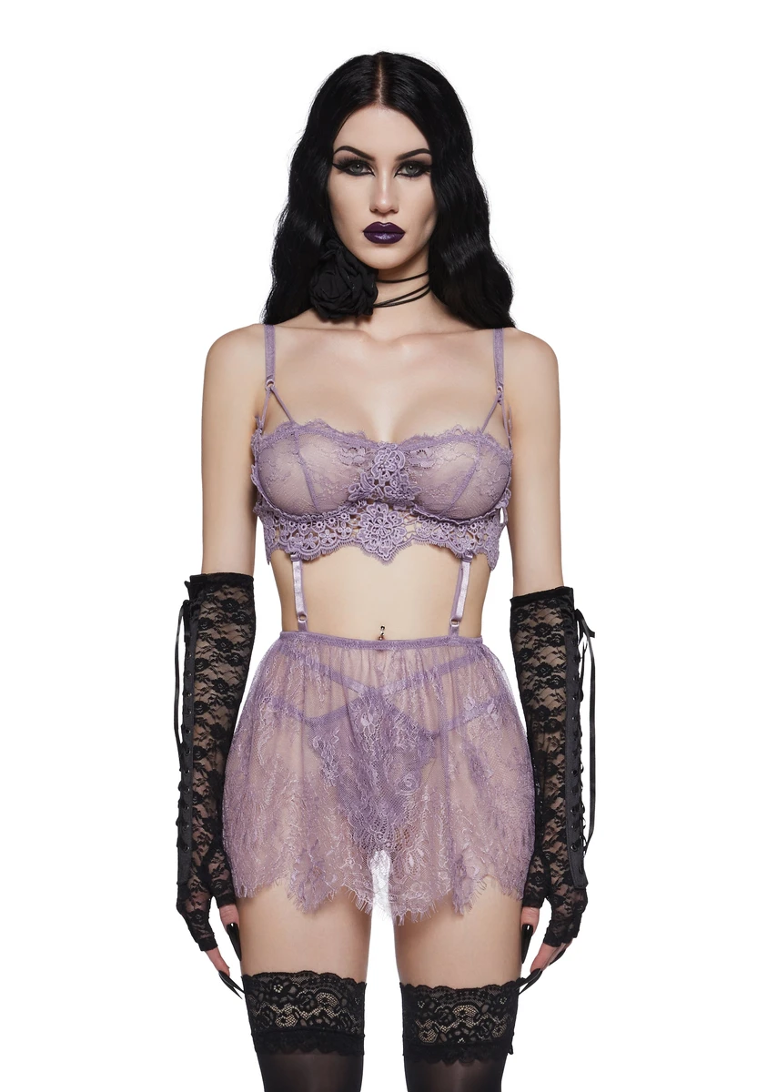 Free, fast shipping on Lilac Ill Fated Lovers Lace Set at Dolls Kill, an online boutique for goth, emo and occult fas...